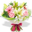 Букет составлен из  розовых роз сорта Ангажемент, нежно – розовых гербер, сливочно – белой альстромерии и нежнейших белых лилий, в окружении салала. Завершает композицию зеленый фетр и лента. Высота букета  40-50 см, а диметр зависит от выбранного варианта букета, которых представлено четыре : уменьшенный, стандарный,люкс и делюкс. В среднем букет в диаметре 25 см. Обращаем Ваше внимание, что состав и упаковка букета могут отличаться.