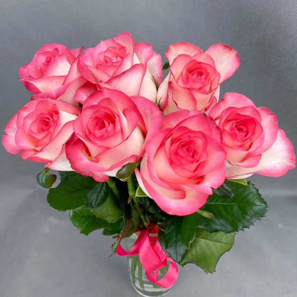 Роза розовая (количество, выбранное Вами) 50 см, лента